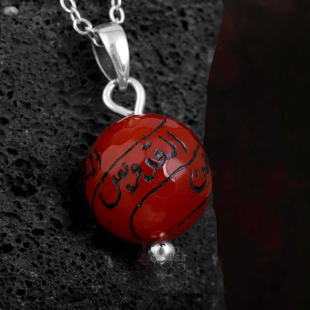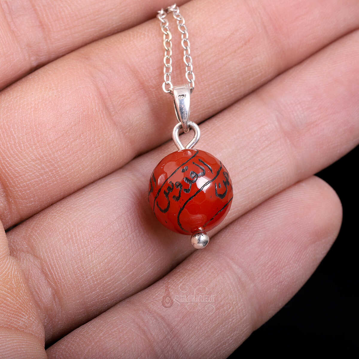 El Kudüs, El Melik, Er Rahim ve Er Rahman Yazılı Fasetli Akik Taşı Kolye, hem manevi anlamı hem de doğal taş enerjisiyle birleşen özel bir el işçiliği parçadır. Üzerinde yer alan esmalar; arınma, korunma, merhamet, rızık ve kalp ferahlığı gibi güçlü manevi anlamlar taşır. Kolye tanelerinde kullanılan faset kesim akik taşı ise her açıdan ışığı kırarak taşın enerjisini daha etkili hissettiren bir parlaklık sunar.