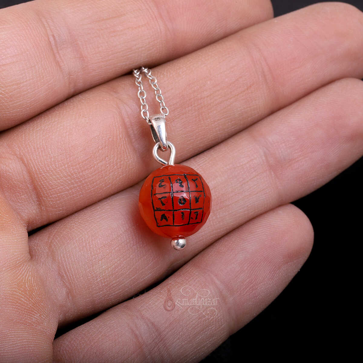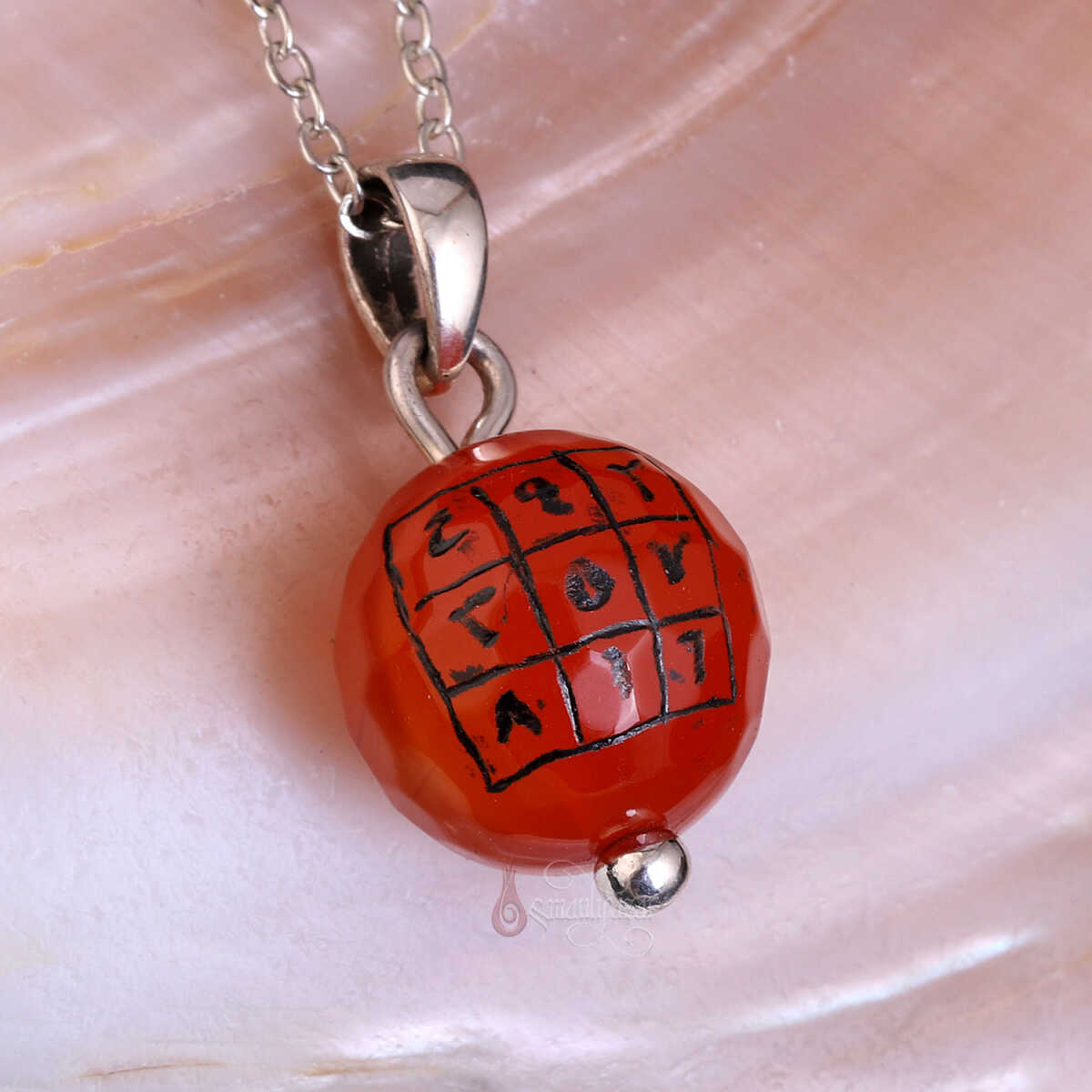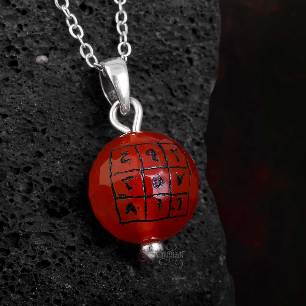 El Yazması Bereket Vefki Fasetli Akik Taşı Kolye, doğal akik taşının güçlü enerjisini, geleneksel ilimlerde kullanılan bereket vefkine ait manevi anlamlarla birleştiren özel bir aksesuardır. Kolyenin merkezindeki faset kesim akik taşı, ışığı her açıdan kırarak göz alıcı bir parlaklık sunar. El yazması bereket vefki ise ustanın titiz çalışmasıyla taşa özel olarak işlenmiştir.