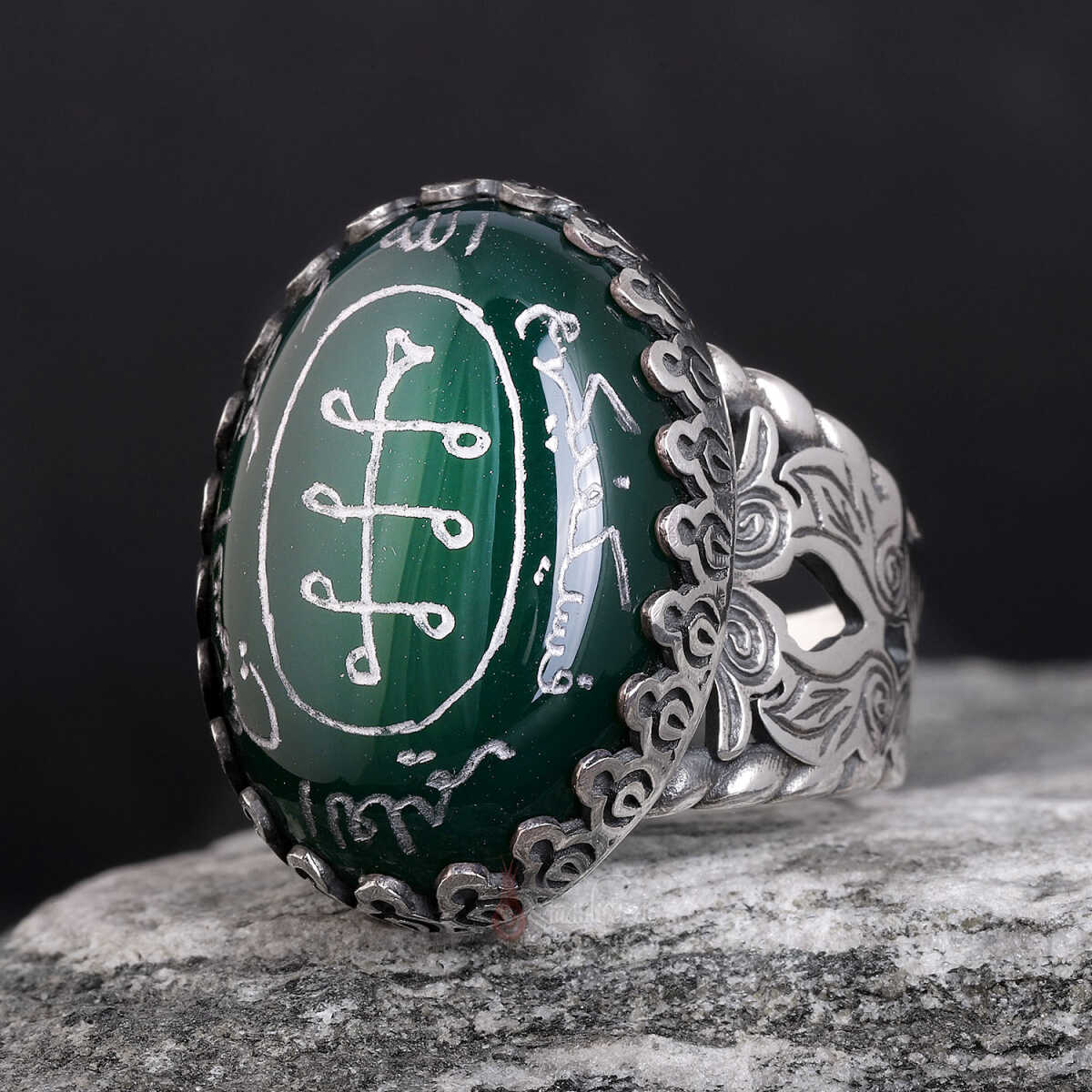 Hz. Ali Güç Tılsımı Yeşil Akik Taşlı Gümüş Yüzük, sadece bir mücevher değil;