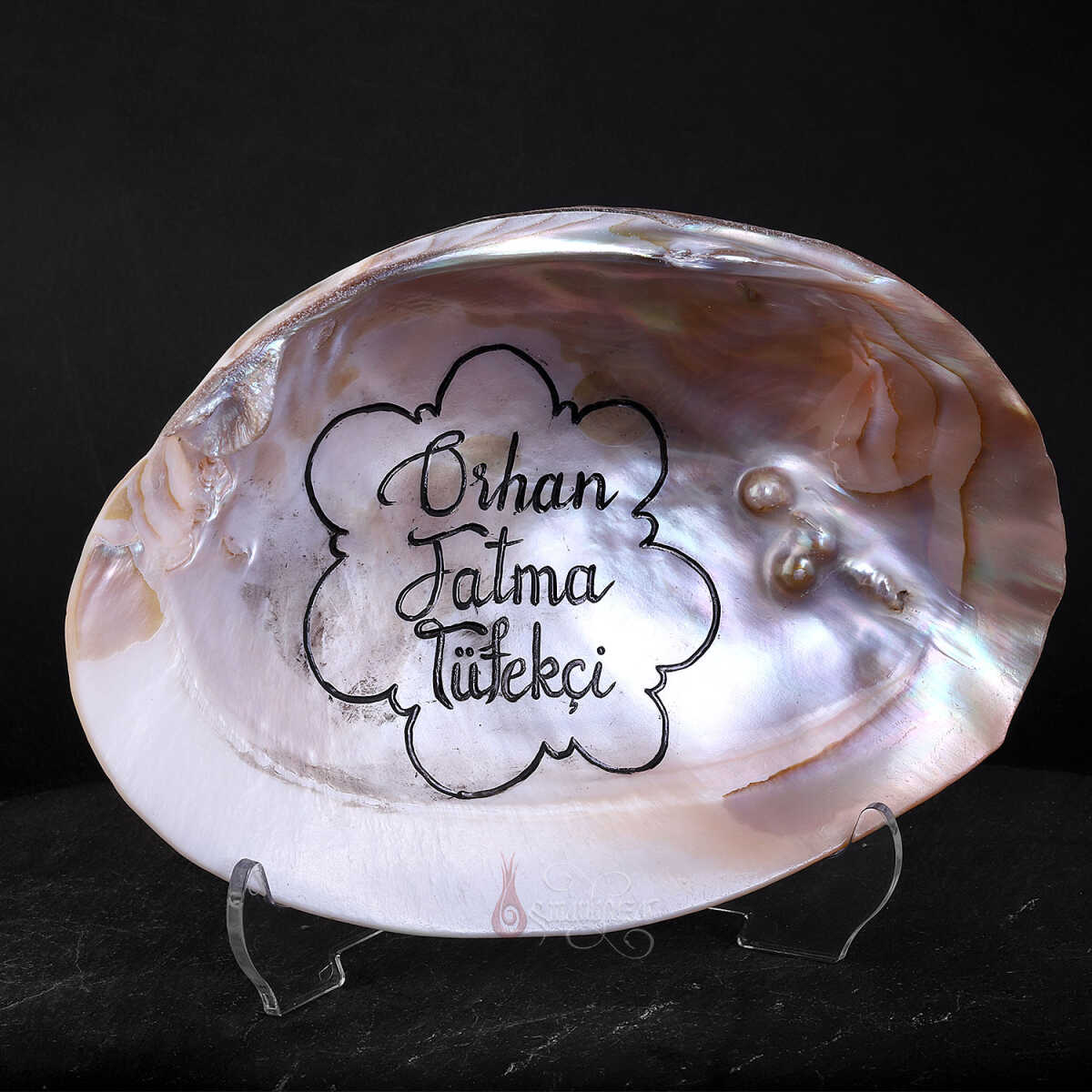 Sedef Kabuk Üzerine Elde Oyma Sanatı Kişiye Özel İsim Yazılı